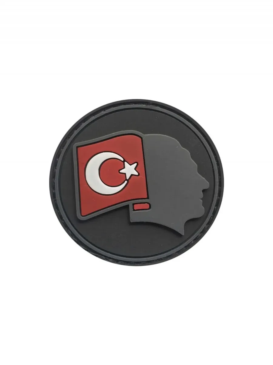 Atatürk ve Türk Bayrağı temalı 3D silikon PVC arma, dayanıklı malzemesiyle üniforma, şapka ve çantalarda şık ve kalıcı kullanım sağlar.