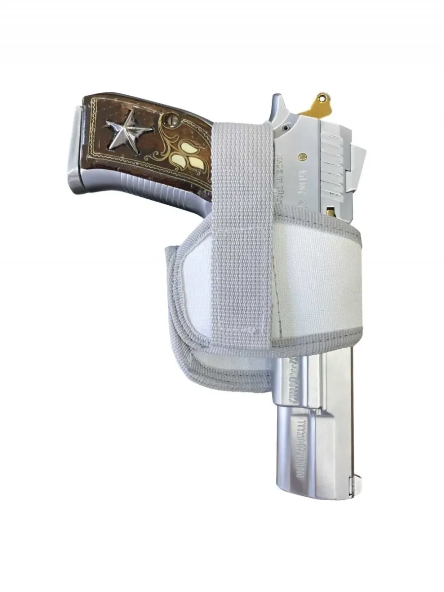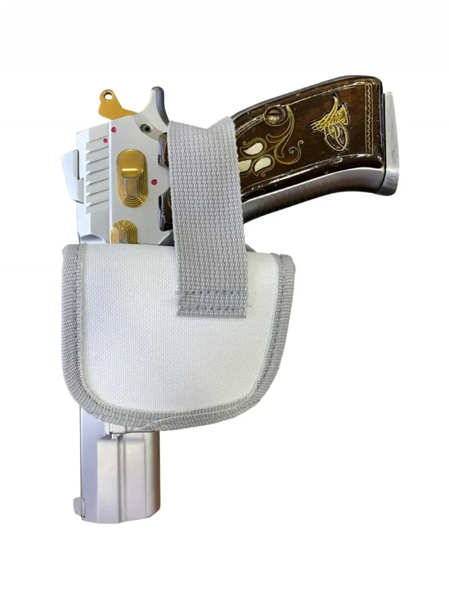 Beyaz imperteks kase silah kılıfı, tüm 9mm modellerle uyumlu, hafif ve kullanımı kolay şık tasarımıyla güvenli taşıma sağlar.