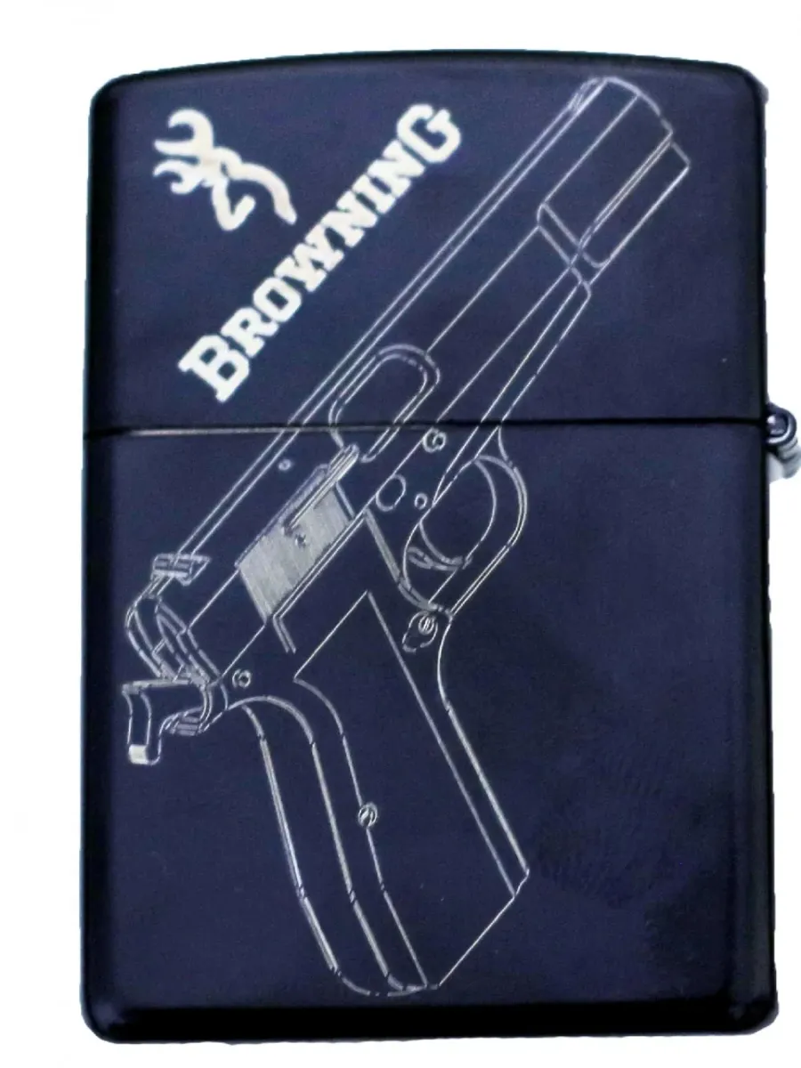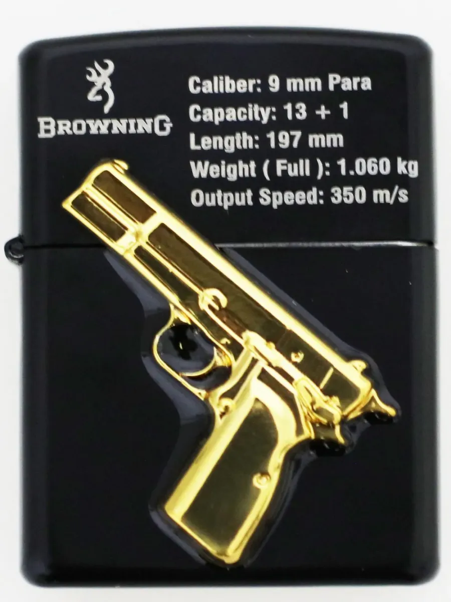 Bu şık ve kullanışlı çakmak, özel Browning deseniyle dikkat çeker. Benzili yapısıyla güçlü ve uzun ömürlü alev sağlar.
