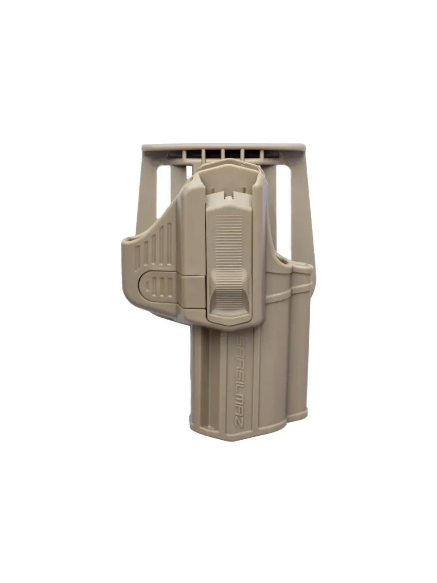 Sarsılmaz SAR9 taktik kılıf, dayanıklı polimer yapısı ve 360° dönebilen tasarımıyla ergonomik, hızlı ve güvenli kullanım sunar.