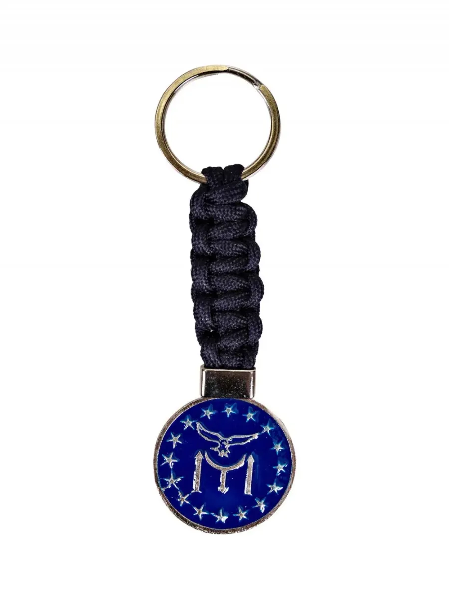 Şık gökmavi Türk IYI Kartal motifli örgülü paracord anahtarlık, dayanıklı ve kullanışlı tasarımıyla günlük kullanım için ideal hediye seçeneği.