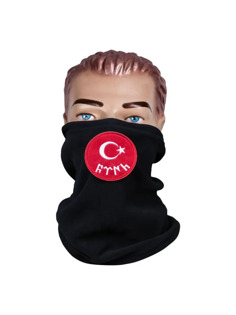 Göktürkçe desenli oval polar boyunluk, kaliteli ve çok yönlü kullanım sunar; soğuk havalarda hem boyunluk hem bere olarak ideal koruma sağlar.