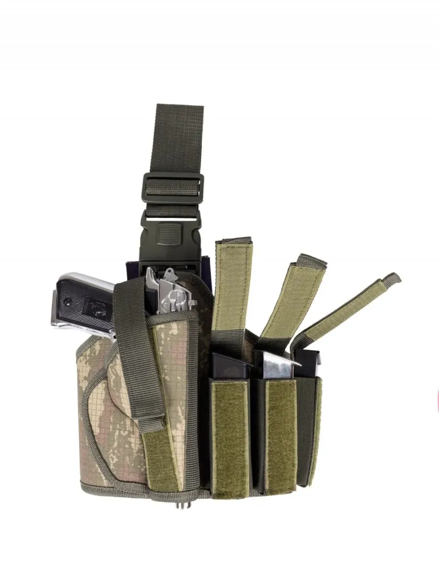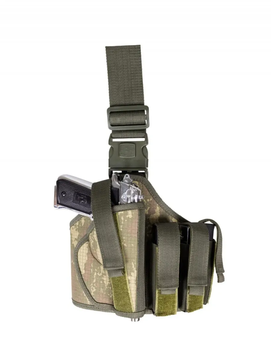JÖH Özel Harekat Tactikal Mil-Le Bacak Kılıfı, dayanıklı ve pratik tasarımıyla konforlu kullanım sunar. Hızlı çıkarılabilen kemer tokası ve 3 yedek şarjör yuvası bulunur.