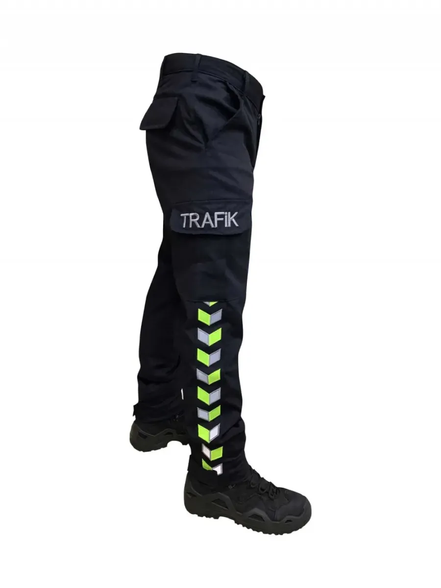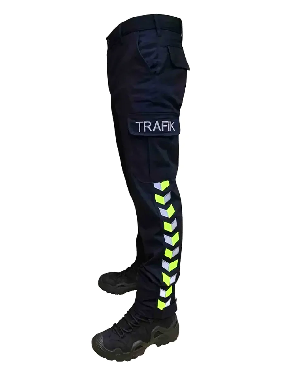 Likralı, dayanıklı ve esnek lacivert trafik polis pantolonu; dört mevsim kullanıma uygun, özel nano kumaş ve ripstop örgü ile hareket özgürlüğü sağlar.