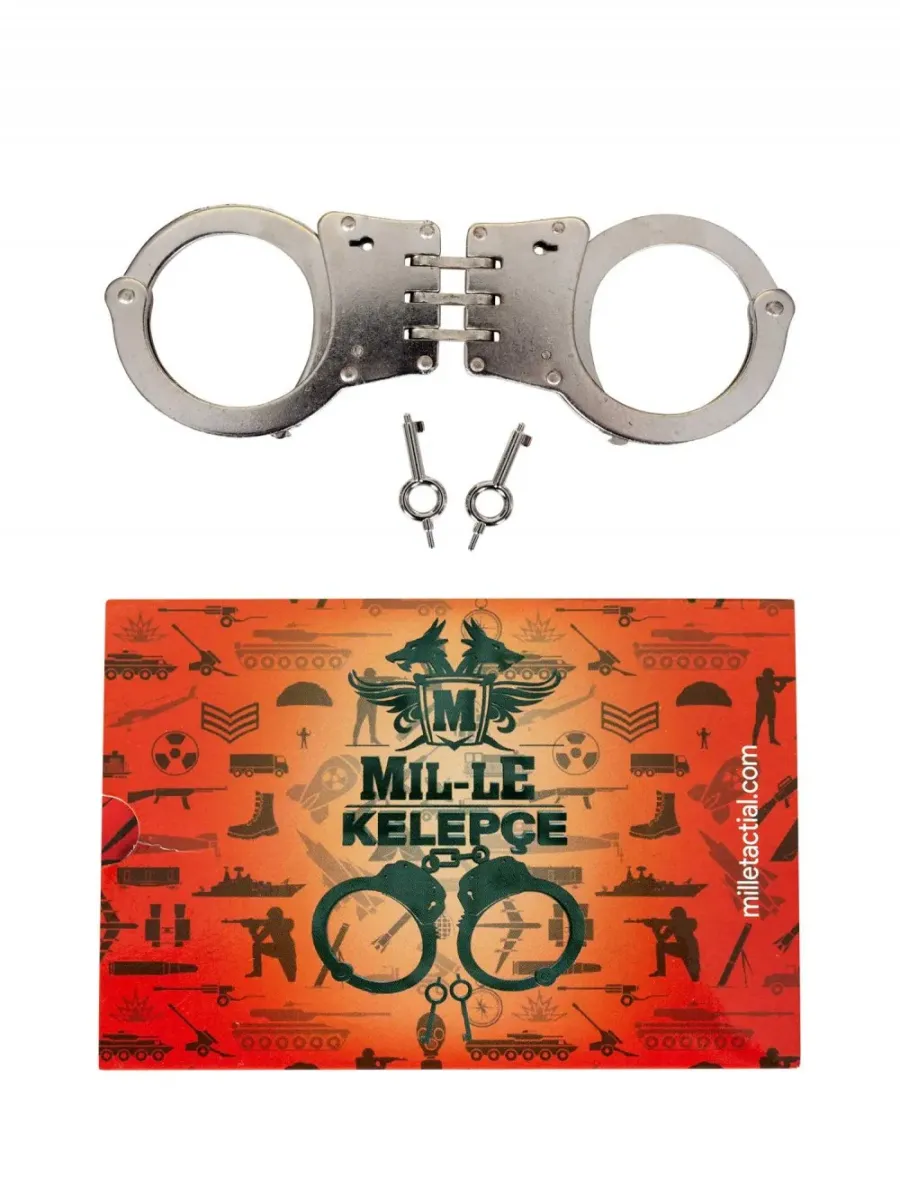 Mille menteşeli polis kelepçesi, dayanıklı paslanmaz çelikten üretilmiş, hızlı ve pratik kullanım sunan güvenilir bir güvenlik ekipmanıdır.
