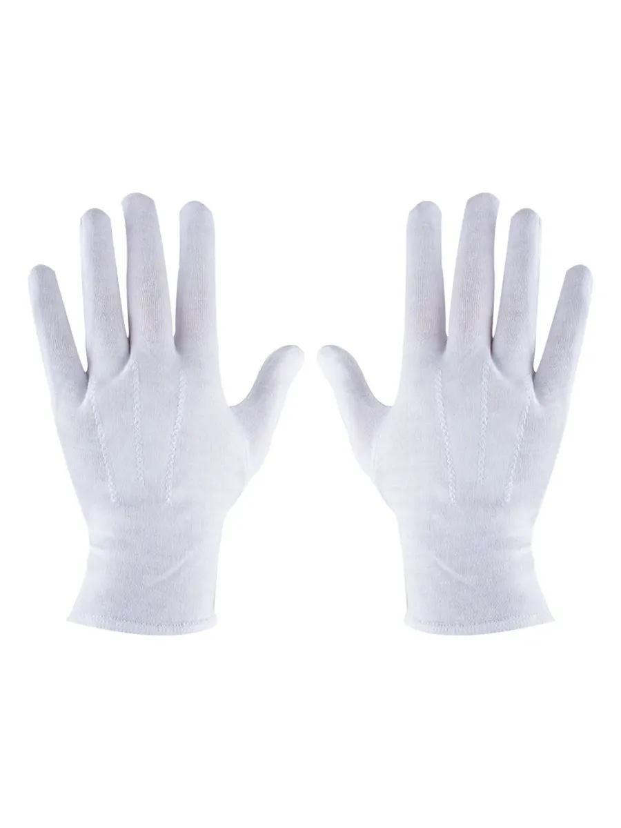 Nervürlü Bandocu Beyaz Eldiven, %100 pamuk iplikten üretilmiş, dayanıklı ve konforlu yapısıyla parmak izi bırakmadan rahat kullanım sunar.