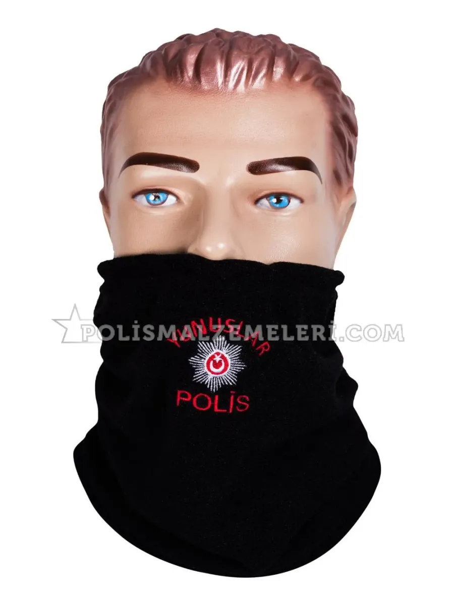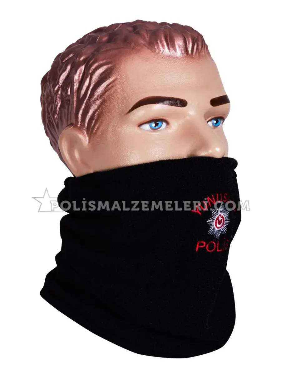 Siyah yunus polis armalı, özel nakışlı polar boyunluk bere ile soğuk havalarda tarzınızı ve konforunuzu koruyun. Dayanıklı ve şık tasarım.