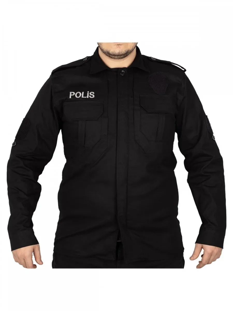 Siyah Polis Gömleği, güvenlik görevlilerinin profesyonel ihtiyaçlarına tam cevap verirken uzun süreli konfor ve dayanıklılık sunar. Görev esnasında hem şık hem kullanışlı bir seçenek arayanlar için idealdir.