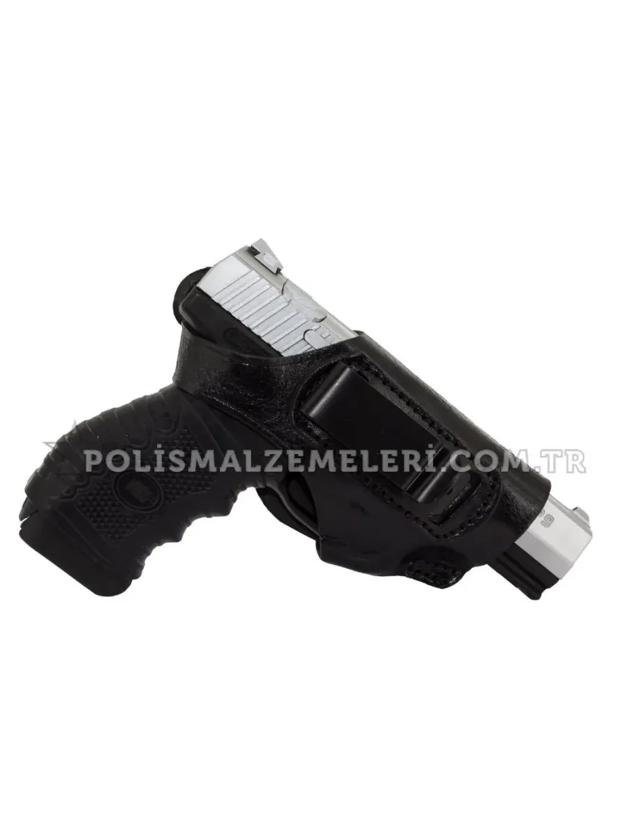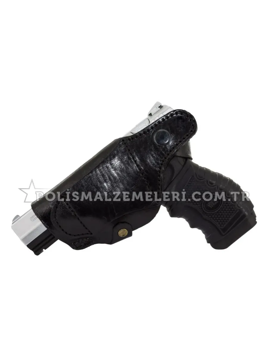 Toma siyah deri spor silah kılıfı, hem iç hem dış kullanım için dayanıklı tasarım ve metal maşa ile kemere kolayca sabitlenir.