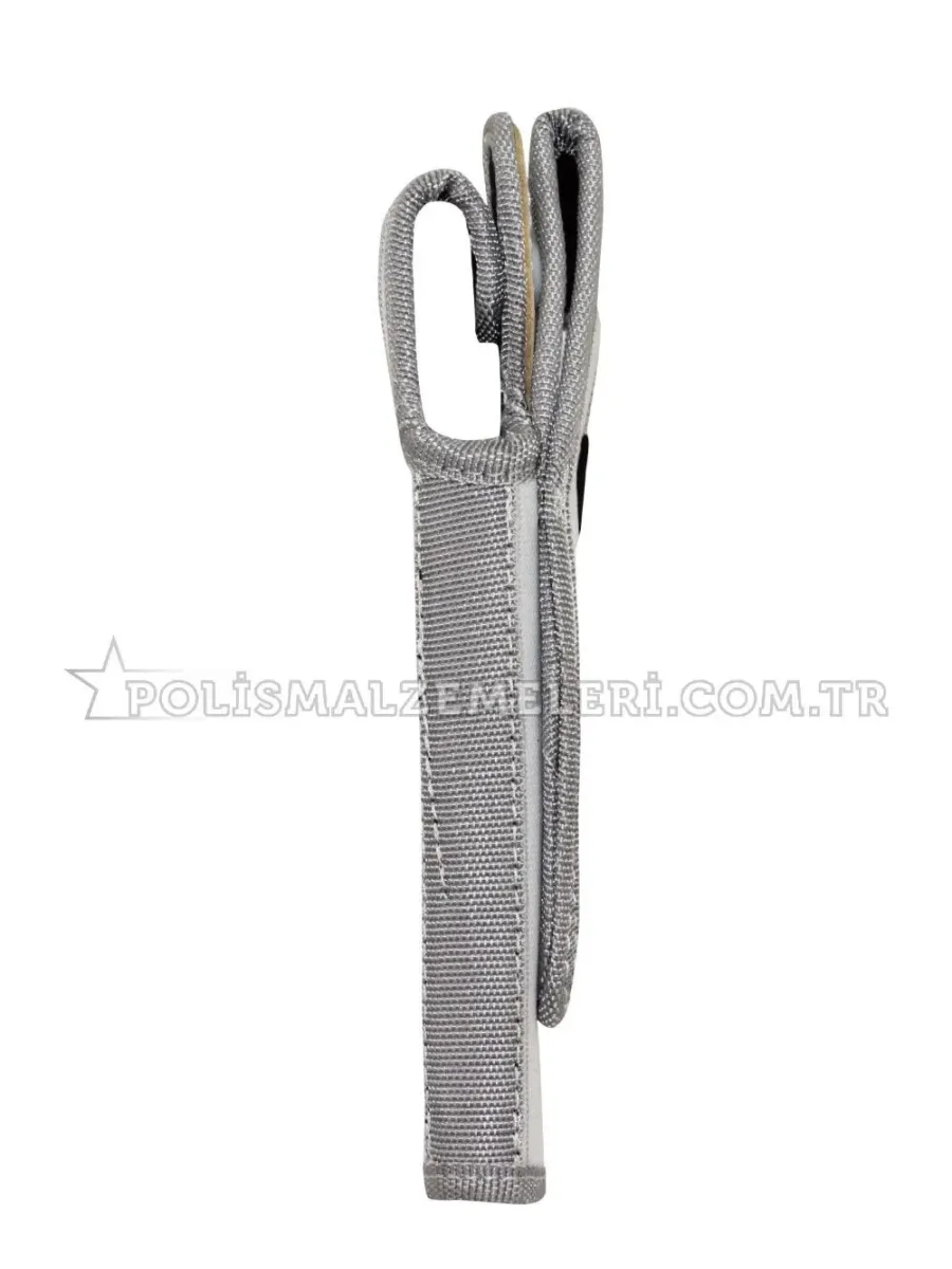 Trafik polisi beyaz akar sallama silah kılıfı, palaskaya kolayca takılarak görev sırasında rahat kullanım sağlar. Dayanıklı ve pratik tasarımla tasarlandı.